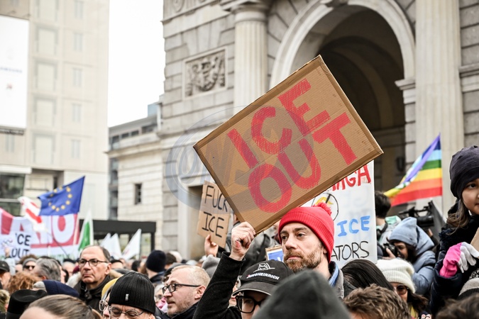 January 31, 2026, Milan. ICE OUT. Left-wing protest against the possible presence of U.S. Special Forces during the Milan-Cortina Winter Olympics., Credit:Nicola Marfisi / Avalon