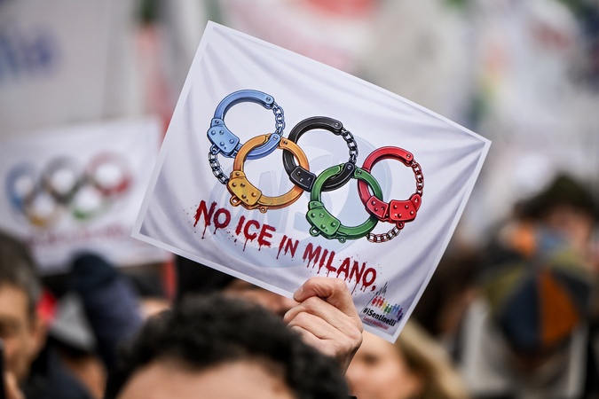 January 31, 2026, Milan. ICE OUT. Left-wing protest against the possible presence of U.S. Special Forces during the Milan-Cortina Winter Olympics., Credit:Nicola Marfisi / Avalon
