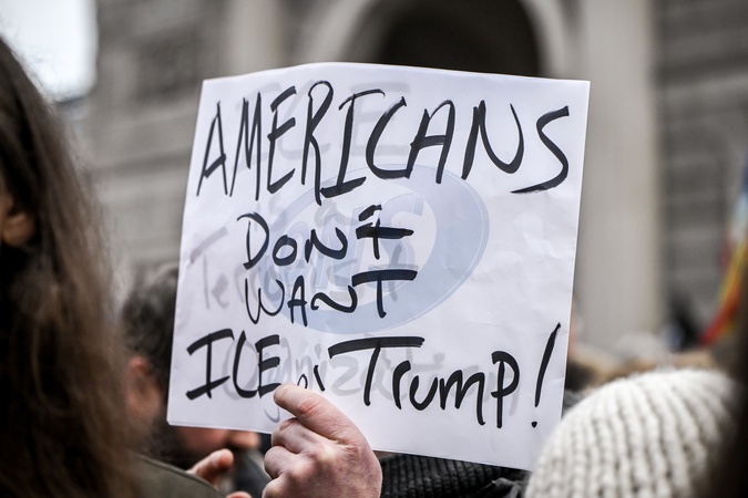 January 31, 2026, Milan. ICE OUT. Left-wing protest against the possible presence of U.S. Special Forces during the Milan-Cortina Winter Olympics., Credit:Nicola Marfisi / Avalon