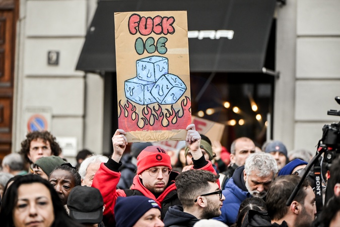 January 31, 2026, Milan. ICE OUT. Left-wing protest against the possible presence of U.S. Special Forces during the Milan-Cortina Winter Olympics., Credit:Nicola Marfisi / Avalon
