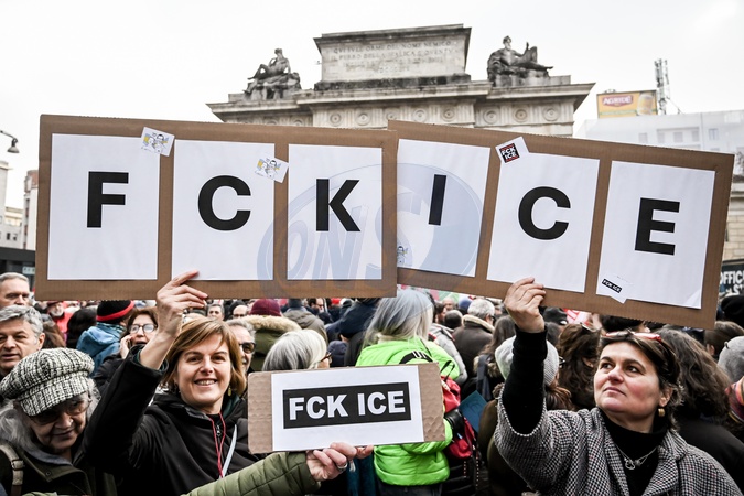January 31, 2026, Milan. ICE OUT. Left-wing protest against the possible presence of U.S. Special Forces during the Milan-Cortina Winter Olympics., Credit:Nicola Marfisi / Avalon