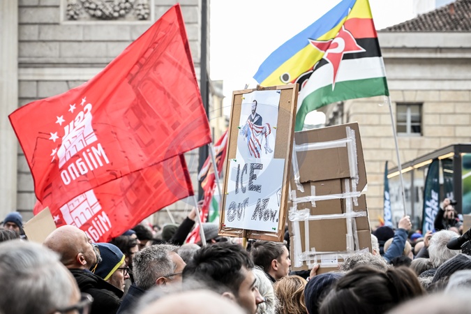 January 31, 2026, Milan. ICE OUT. Left-wing protest against the possible presence of U.S. Special Forces during the Milan-Cortina Winter Olympics., Credit:Nicola Marfisi / Avalon