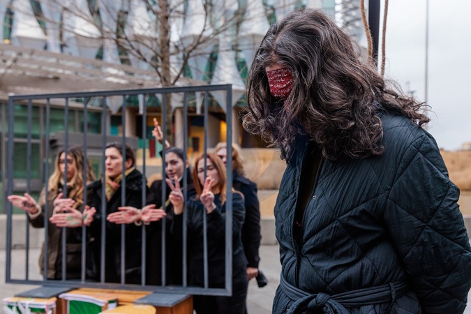 US Embassy, London, UK. 31st January 2026.Iranians joined former political prisoner, Nasrin Roshan, outside the US Embassy in London to highlight the arrests and executions of activists in Iran. Released from Evin Prison for the second time just over 7 months ago, Roshan is demonstrating on behalf of Evin prisoners on the silence by governments worldwide on the mass killings by the Islamic Republic and calling for US President Trump to keep his promise to support Iran., Credit:Photo by Amanda Rose / Avalon