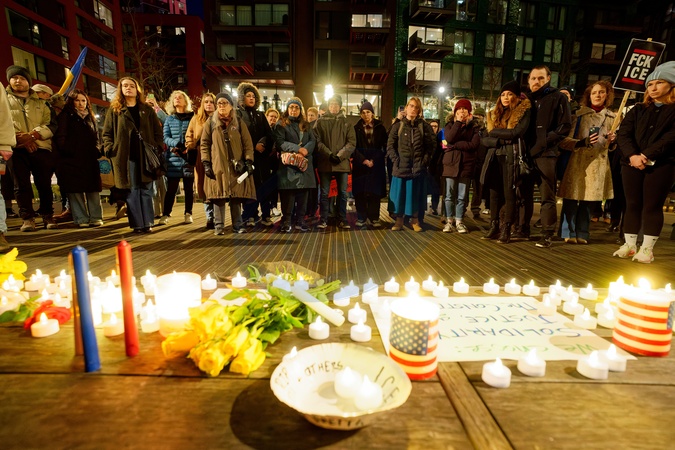 A group of people met in front of the American Embassy in London to light candles and play songs in memory of Alex Pretti and all victims of US ICE violence., Credit:Aldo Ciarrocchi / Avalon