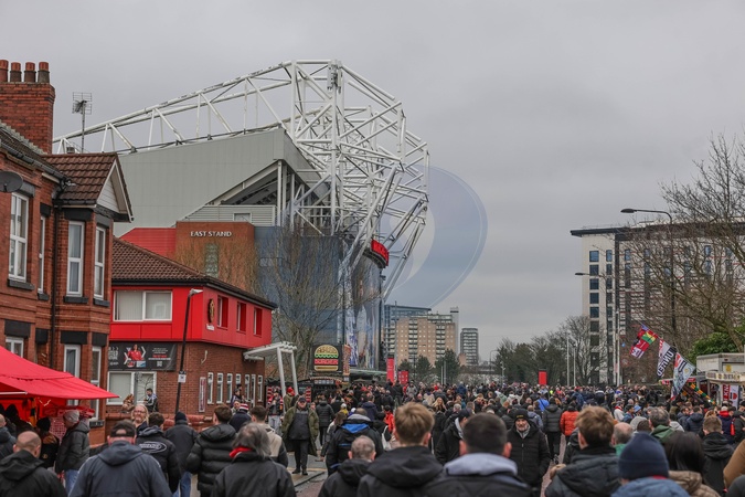 Manchester United fans make their way to Old Trafford during the Premier League match Manchester United vs Fulham at Old Trafford, Manchester, United Kingdom, 1st February 2026, Credit:Mark Cosgrove/News Images / Avalon