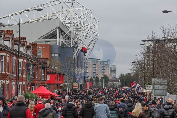Manchester United fans make their way to Old Trafford during the Premier League match Manchester United vs Fulham at Old Trafford, Manchester, United Kingdom, 1st February 2026, Credit:Mark Cosgrove/News Images / Avalon
