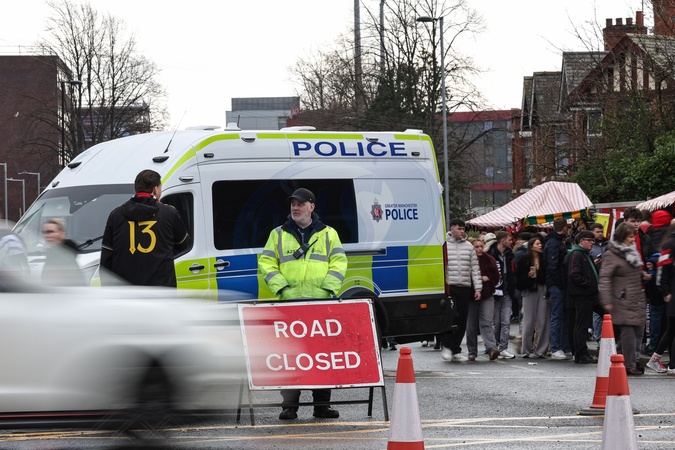 Road closures are in place ahead of a planned protest by Manchester United fans during the Premier League match Manchester United vs Fulham at Old Trafford, Manchester, United Kingdom, 1st February 2026, Credit:Mark Cosgrove/News Images / Avalon
