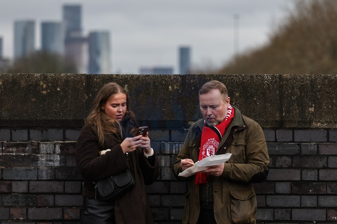 Manchester United fans taking a bite to eat during the Premier League match Manchester United vs Fulham at Old Trafford, Manchester, United Kingdom, 1st February 2026, Credit:Mark Cosgrove/News Images / Avalon
