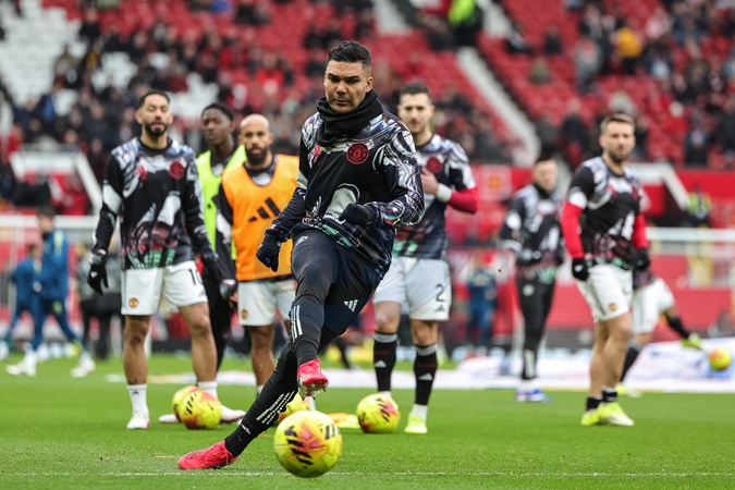 Casemiro of Manchester United in the pregame warmup session during the Premier League match Manchester United vs Fulham at Old Trafford, Manchester, United Kingdom, 1st February 2026, Credit:Mark Cosgrove/News Images / Avalon