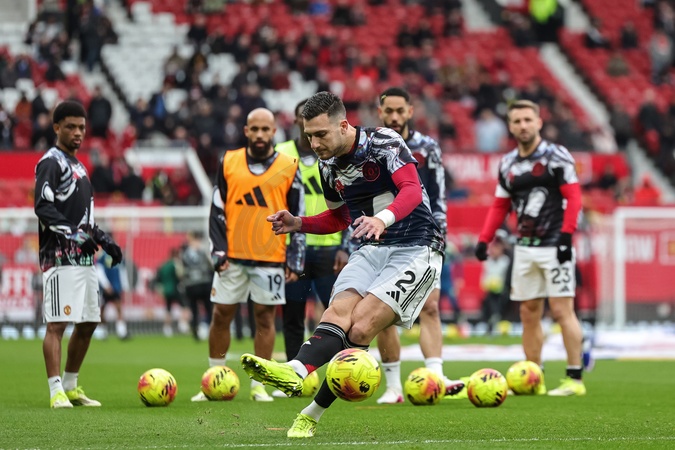 Diogo Dalot of Manchester United in the pregame warmup session during the Premier League match Manchester United vs Fulham at Old Trafford, Manchester, United Kingdom, 1st February 2026, Credit:Mark Cosgrove/News Images / Avalon