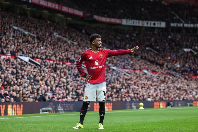 Amad Diallo of Manchester United reacts during the Premier League match Manchester United vs Fulham at Old Trafford, Manchester, United Kingdom, 1st February 2026, Credit:Mark Cosgrove/News Images / Avalon