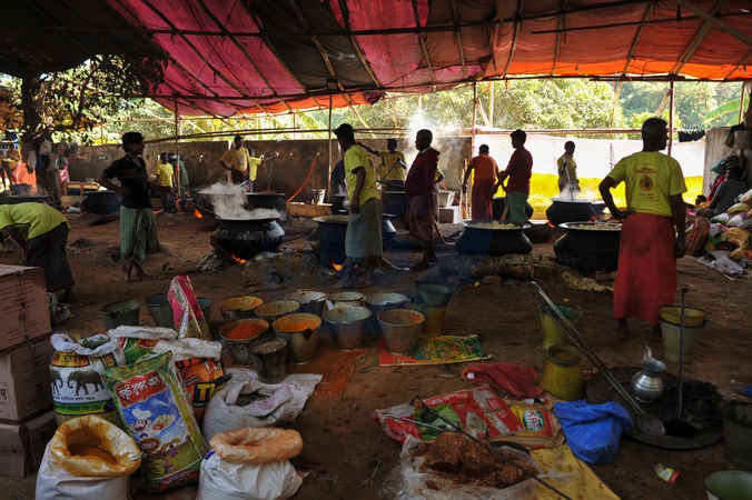 Chattogram, Bangladesh- Volunteers prepare communal Holy meals in large pots for pilgrims at the Rishi Kumbh Mela in Banshkhali, Chattogram, Bangladesh. Rishi Kumbh Mela is a major Hindu pilgrimage and cultural gathering held in the Rishi Dham area of Banshkhali Upazila, Chattogram, Bangladesh. Recognized as the country's only international Rishi Kumbh, the fair takes place approximately every three years and serves as a significant event for spiritual devotion, religious education, and social unity among Hindu communities., Credit:Md Rafayat Haque Khan / Avalon
