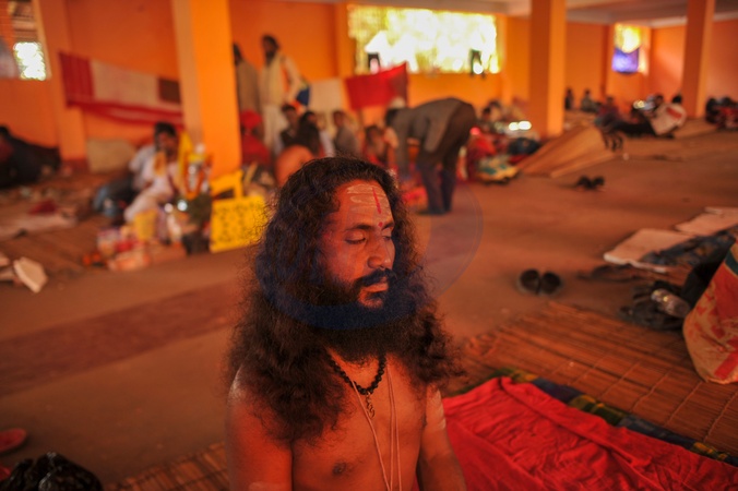 Chattogram, Bangladesh- A Hindu sadhu sits in deep meditation during the Rishi Kumbh Mela in Banshkhali, Chattogram, Bangladesh. Rishi Kumbh Mela is a major Hindu pilgrimage and cultural gathering held in the Rishi Dham area of Banshkhali Upazila, Chattogram, Bangladesh. Recognized as the country's only international Rishi Kumbh, the fair takes place approximately every three years and serves as a significant event for spiritual devotion, religious education, and social unity among Hindu communities., Credit:Md Rafayat Haque Khan / Avalon