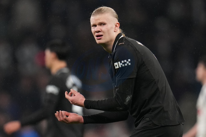 Erling Haaland of Manchester City frustrated during the Premier League match Tottenham Hotspur vs Manchester City at Tottenham Hotspur Stadium, London, United Kingdom, 1st February 2026, Credit:Harvey Murphy/News Images / Avalon