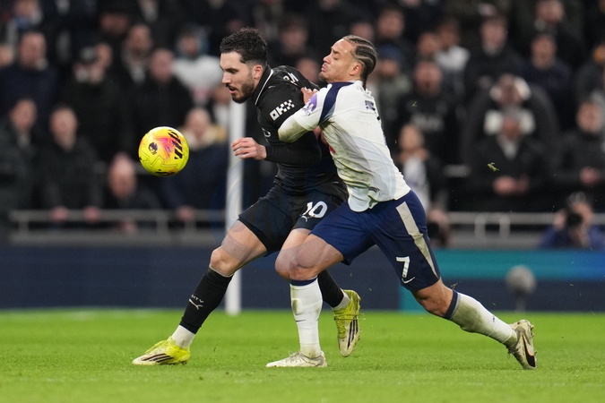Rayan Cherki of Manchester City and Xavi Simons of Tottenham Hotspur during the Premier League match Tottenham Hotspur vs Manchester City at Tottenham Hotspur Stadium, London, United Kingdom, 1st February 2026, Credit:Harvey Murphy/News Images / Avalon