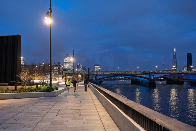 Bazalgette Embankment,adjacent to Victoria Embankment by Blackfriars bridge on the River Thames,a new piece of reclaimed land that hides the Tideway tunnel beneath. London. UK