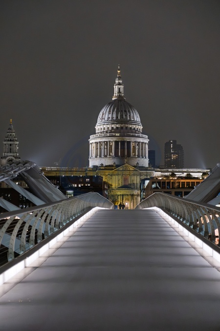St Paul's cathedral seen from the Millenium bridge in the City of London. London. UK