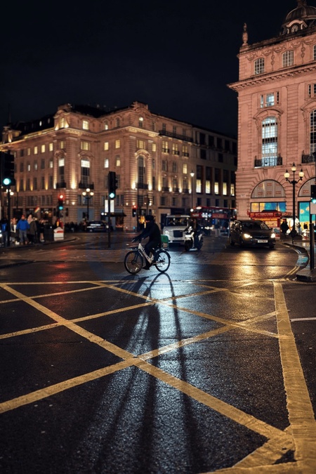 London, UK. 1 February 2026. Night-time street scene at Piccadilly Circus in central London, with traffic and pedestrians crossing wet roads following rainfall., Credit:Alexander Seale / Avalon