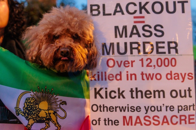 A growing group of four legged activists are spotted at the Iranian protests in London.In Iran, dogs are banned and even executed to protect "public order, health, and safety.” and their owners arrested.These 'Pooches for Pawlavi' joining their humans in the fight to free Iran from the Islamic Republic and bring back the Pahlavi Monarchy., Credit:Photo by Amanda Rose / Avalon