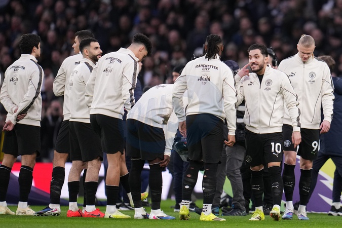 Manchester City players ahead of kick off during the Premier League match Tottenham Hotspur vs Manchester City at Tottenham Hotspur Stadium, London, United Kingdom, 1st February 2026, Credit:Harvey Murphy/News Images / Avalon