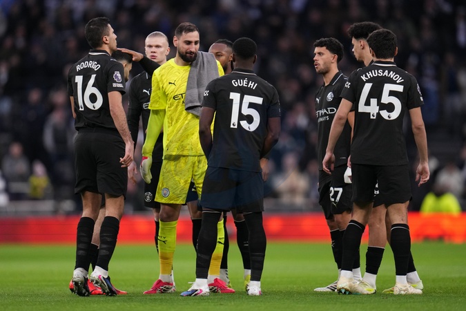 Manchester City players during the Premier League match Tottenham Hotspur vs Manchester City at Tottenham Hotspur Stadium, London, United Kingdom, 1st February 2026, Credit:Harvey Murphy/News Images / Avalon