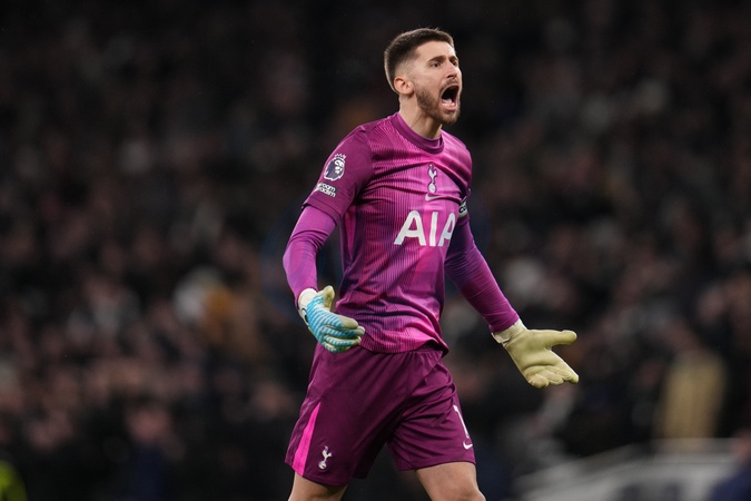 Guglielmo Vicario of Tottenham Hotspur celebrates goal during the Premier League match Tottenham Hotspur vs Manchester City at Tottenham Hotspur Stadium, London, United Kingdom, 1st February 2026, Credit:Harvey Murphy/News Images / Avalon