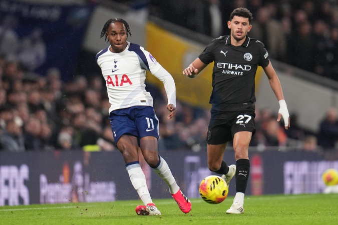 Mathys Tel of Tottenham Hotspur attempts pass under pressure from Matheus Nunes of Manchester City during the Premier League match Tottenham Hotspur vs Manchester City at Tottenham Hotspur Stadium, London, United Kingdom, 1st February 2026, Credit:Harvey Murphy/News Images / Avalon