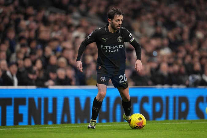 Bernardo Silva of Manchester City on the ball during the Premier League match Tottenham Hotspur vs Manchester City at Tottenham Hotspur Stadium, London, United Kingdom, 1st February 2026, Credit:Harvey Murphy/News Images / Avalon
