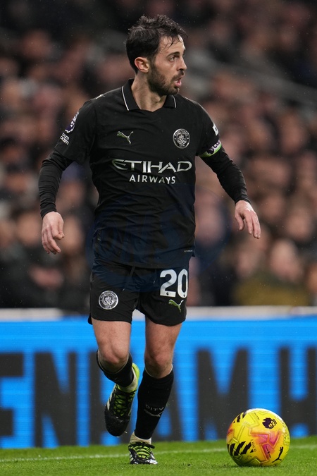 Bernardo Silva of Manchester City with the ball during the Premier League match Tottenham Hotspur vs Manchester City at Tottenham Hotspur Stadium, London, United Kingdom, 1st February 2026, Credit:Harvey Murphy/News Images / Avalon