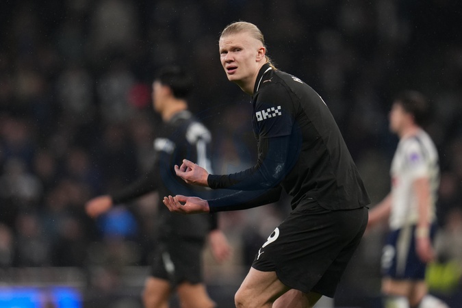 Erling Haaland of Manchester City frustrated during the Premier League match Tottenham Hotspur vs Manchester City at Tottenham Hotspur Stadium, London, United Kingdom, 1st February 2026, Credit:Harvey Murphy/News Images / Avalon