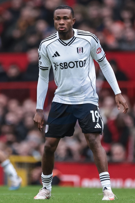 Samuel Chukwueze of Fulham during the Premier League match Manchester United vs Fulham at Old Trafford, Manchester, United Kingdom, 1st February 2026, Credit:Mark Cosgrove/News Images / Avalon
