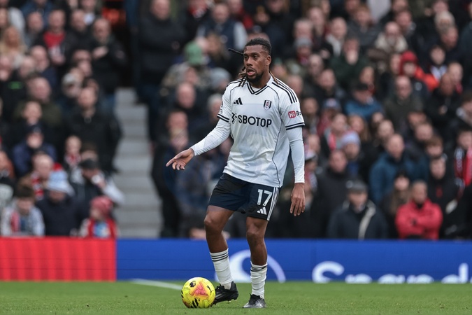 Alex Iwobi of Fulham with the ball during the Premier League match Manchester United vs Fulham at Old Trafford, Manchester, United Kingdom, 1st February 2026, Credit:Mark Cosgrove/News Images / Avalon
