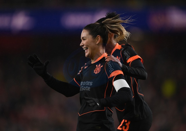LONDON, ENGLAND - FEBRUARY 01: Gabi Zanotti of SC Corinthians celebrates scoring her team's first goal during the FIFA Women's Champions Cup 2026 Final match between Arsenal Women FC and SC Corinthians at Arsenal Stadium on February 01, 2026 in London, England., Credit:TIM / SL / Avalon