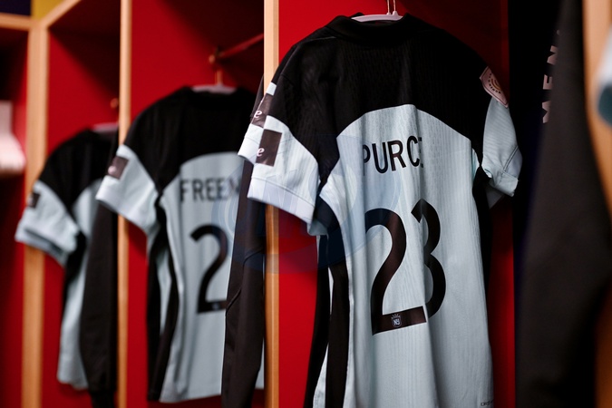 LONDON, ENGLAND - FEBRUARY 01: A detailed view of the match shirt of Midge Purce in the Gotham FC dressing room prior to the FIFA Women's Champions Cup 2026 Third Place Play Off match between ASFAR and Gotham FC at Arsenal Stadium on February 01, 2026 in London, England., Credit:RH / SL / Avalon