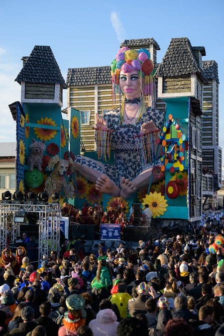 First masked parade of the Viareggio Carnival 2026. In the photo, the first category float "I live in this moment" by Roberto Vannucci. . Viareggio, Italy 01 Feb 2026, Credit:Stefano Dalle Luche / Avalon