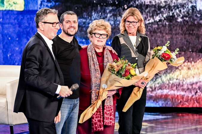 February 1, 2026, Milan. TV show "Che Tempo Che Fa." Fabio Fazio, Alberto Trentini, his mother Armanda Colusso, and human rights lawyer Alessandra Ballerini., Credit:Nicola Marfisi / Avalon