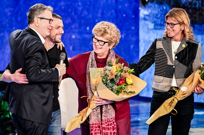 February 1, 2026, Milan. TV show "Che Tempo Che Fa." Fabio Fazio, Alberto Trentini, his mother Armanda Colusso, and human rights lawyer Alessandra Ballerini., Credit:Nicola Marfisi / Avalon