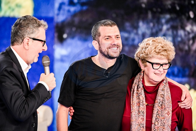 February 1, 2026, Milan. TV show "Che Tempo Che Fa." Fabio Fazio, Alberto Trentini, and his mother, Armanda Colusso., Credit:Nicola Marfisi / Avalon