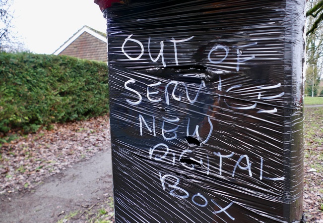 A sealed up post box due to be converted to digital. Royal Mail is introducing 3,500 solar-powered postboxes across the UK, altering the iconic look of the red pillar boxes that have punctuated Britain's streets for nearly two centuries.In the new design, solar panels on the top of the postboxes power a digitally-activated drawer, allowing customers to deposit small parcels., Credit:Geoffrey Swaine / Avalon