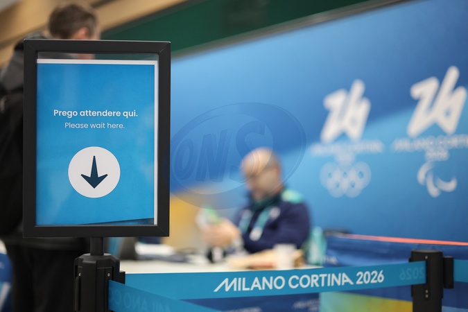 February 2, 2026, Ferno, Italy. Olympic and Paralympic Games - Malpensa Airport. The photo shows the Olympic and Paralympic Games logo and rings, IPC at Malpensa Airport during the accreditation process; the 2026 Winter Olympic Games will be held from February 6 to 22 at various venues in Lombardy and Northeastern Italy., Credit:Pierre Teyssot / Avalon
