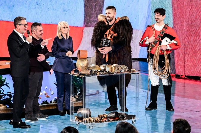February 1, 2026, Milan. TV show "Che Tempo Che Fa." Fabio Fazio, Luciana Littizzetto, and Carlo Sulis, Mamuthones and Issohadores., Credit:Nicola Marfisi / Avalon