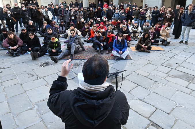 February 1, 2026, Florence. Tomaso Montanari held an open art history lecture in front of the Uffizi Gallery entrance. This initiative was held in support of the Uffizi Gallery's long-time temporary workers who are now unemployed. The event, attended by several hundred people, was organized by SUDD (Union of Democracy and Dignity), COBAS, and Arci Firenze..., Credit:Aleandro Biagianti / Avalon