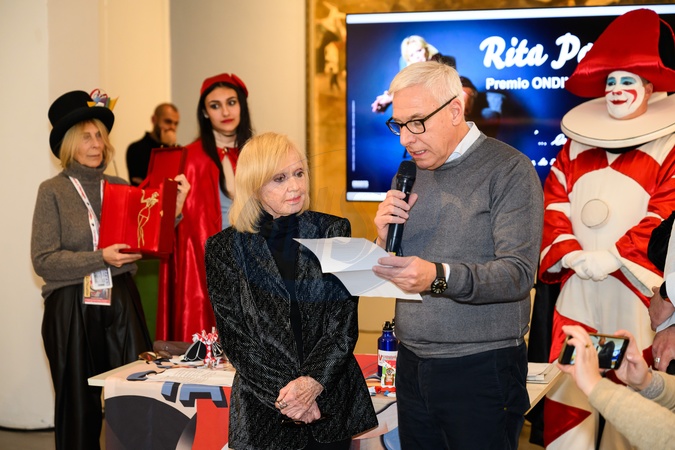 Rita Pavone receives the Ondina D'Oro award at the 2026 Viareggio Carnival from the President of the Carnival Foundation, Maria Lina Marcucci, and the Mayor of Viareggio, Giorgio Del Gingaro. Viareggio, Italy 01 Feb 2026, Credit:Stefano Dalle Luche / Avalon