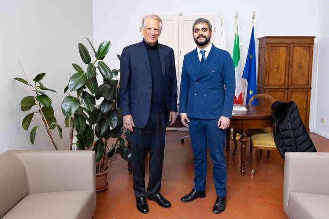 February 2, 2026, Florence. City Council President Cosimo Guccione meets with former French Prime Minister Dominique de Villepin., Credit:Niccolo Changes / Avalon