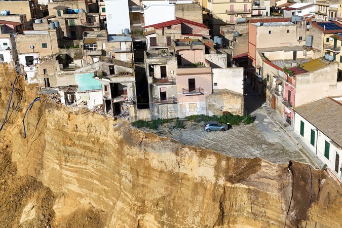 February 2, 2026, Niscemi (Caltanissetta). Another ten meters of erosion in seven days. The landslide advances inland, the collapses continue, and an entire building collapsed two days ago., Credit:FORTUNATE SERRANO' / Avalon