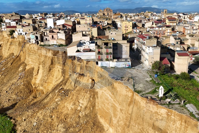 February 2, 2026, Niscemi (Caltanissetta). Another ten meters of erosion in seven days. The landslide advances inland, the collapses continue, and an entire building collapsed two days ago., Credit:FORTUNATE SERRANO' / Avalon