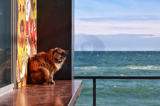 A ginger car stays at a kiosk by the Black Sea on a sunny winter day, Odesa, Ukraine, February 2, 2026., Credit:Nina Liashonok / Avalon