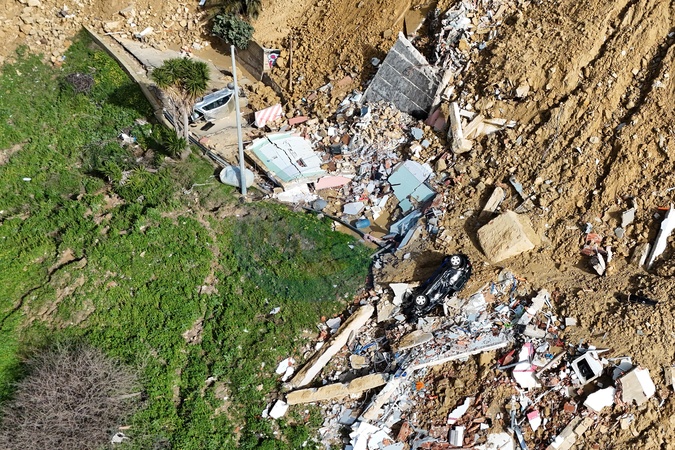February 3, 2026, Niscemi (CL), Landslide in the town of Niscemi, 1,500 people evacuated and a red zone established. Pictured is the car that had been teetering on the ravine for several days, which fell during the night., Credit:Fortunato Serrano' / Avalon