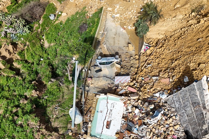 February 3, 2026, Niscemi (CL), Landslide in the town of Niscemi, 1,500 people evacuated and a red zone established. Pictured is the car that had been teetering on the ravine for several days, which fell during the night., Credit:Fortunato Serrano' / Avalon