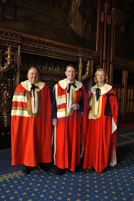 Peter Mandelson is introduced to the House of Lords as Lord Mandelson,of Foy in Our of Herefordshire and of Hartlepool in Our County of Durham seen in the Queen's Robing Room, He was Supported by Baroness Jay of Paddington and Lord Falconer of Thoroton. House of Lords. London.Date:13.010.2008., Credit:Gary Lee / Avalon